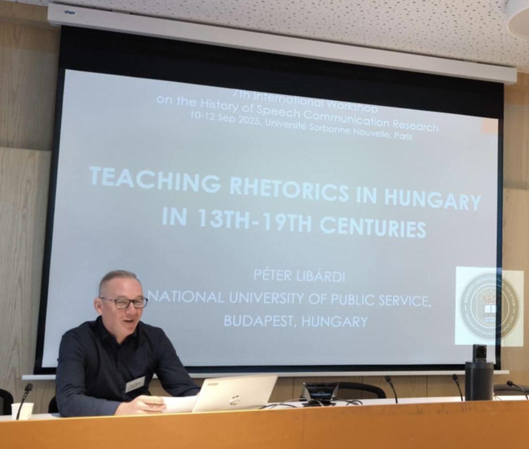 2025. szeptember 10–12. között a Sorbonne adott otthont a Seventh International Workshop on the History of Speech Communication Research című nemzetközi tudományos konferenciának. A tanácskozáson Dr. Libárdi Péter, az NKE NITK Magyar Nyelv és Irodalom Tanszékének egyetemi adjunktusa tartott előadást Teaching rhetorics in Hungary in 13th–19th centuries címmel.